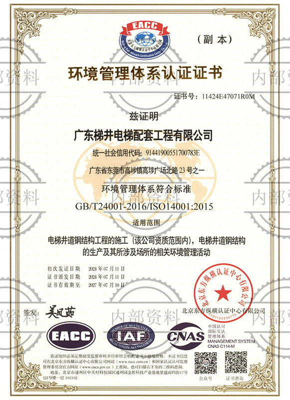 环境管理体系认证证书